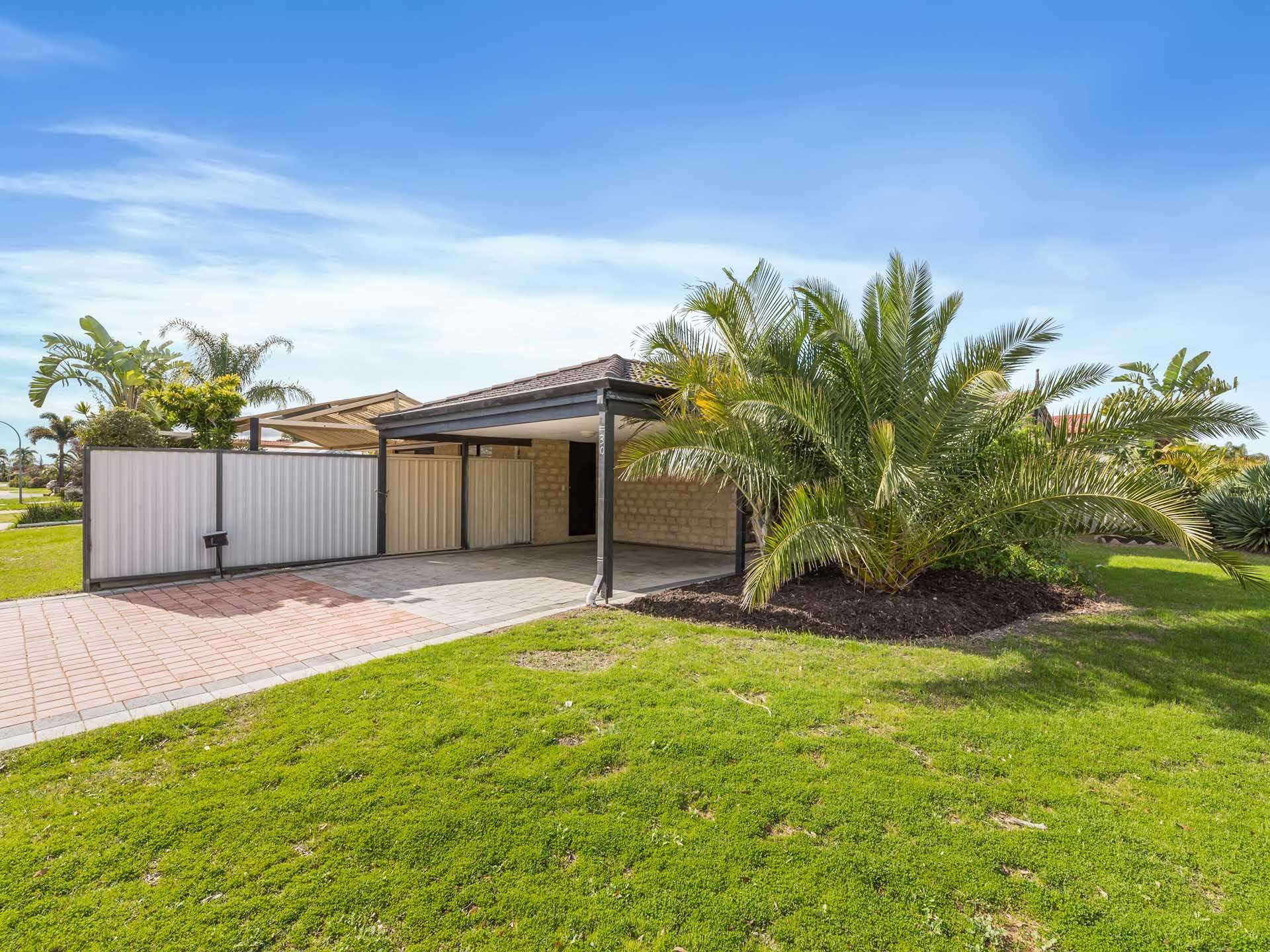 The backyard features a double gate side access from the road and access to the deck from the carport gate.